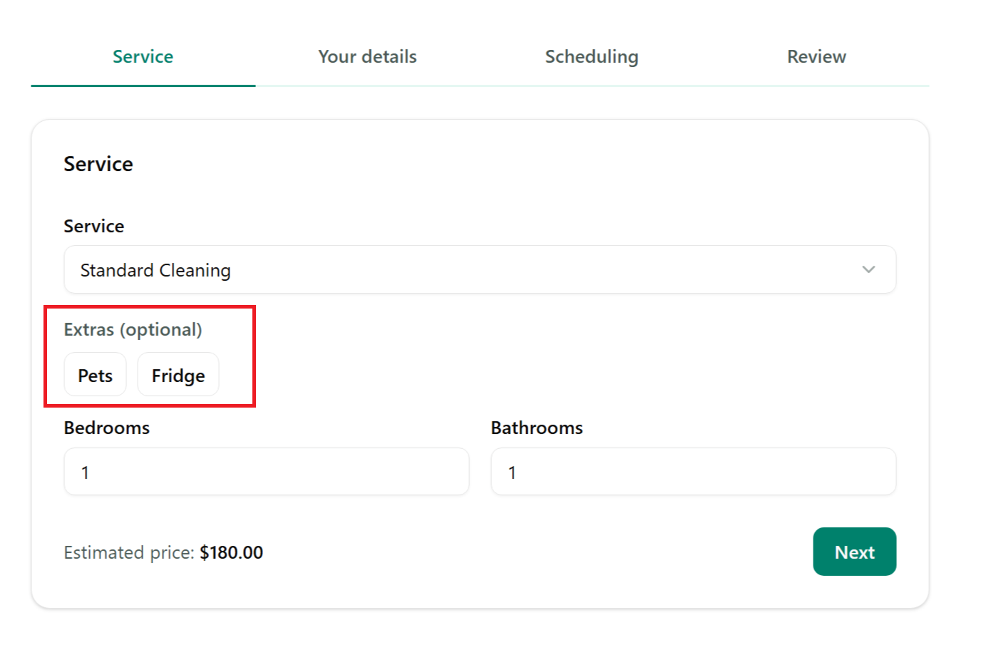 Your booking or quote process should include a checklist of available add-ons with prices. Clients self-select what they want. No awkward conversation required. If you're using scheduling software like CleanSlot, you can build these add-ons directly into your online booking flow so clients see options and prices automatically when they book. No back-and-forth, no manual quoting every time.