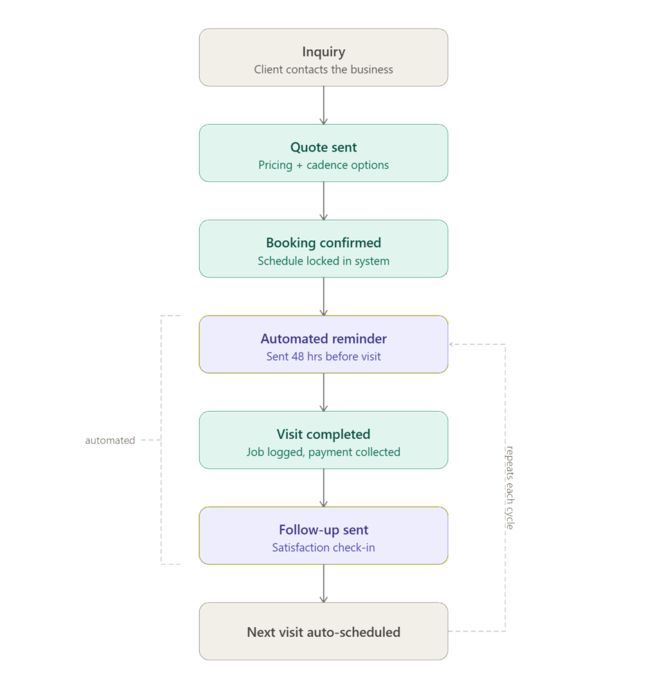 A recurring client costs you almost nothing to retain once they're in the system, and they're easier to serve on every visit: you know the layout, the pets, the problem areas, the lockbox code.